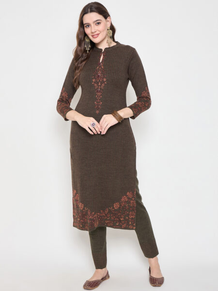 Premium Knit: The kurta and pants are made from high-quality yarn for a soft, cozy knit that will keep you comfortable and warm. The richness of the knit texture lends a touch of sophistication to the overall ensemble while keeping you comfortable all through the day.