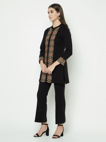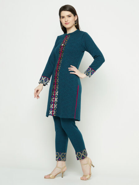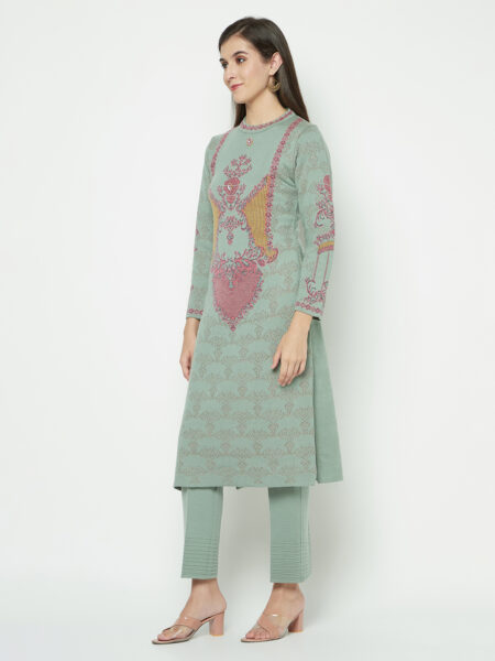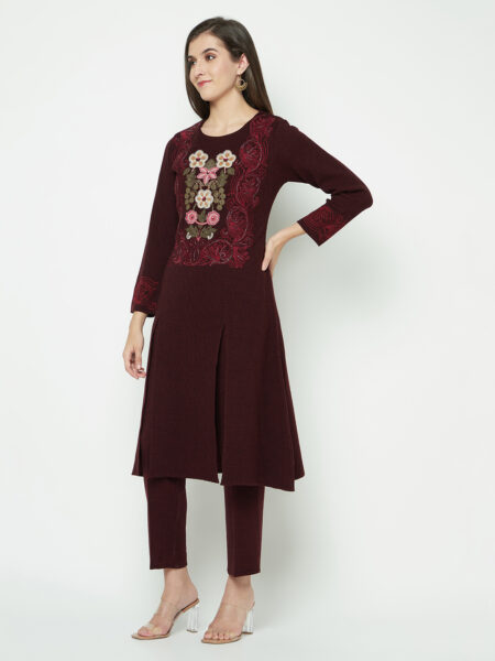 Detailed curvaceous work is done on the kurta; it includes fine embroidery along with playfulness that presents an elegance touch. For festive occasions, family events, or casual outings, this set of palazzos or churidars would go very well with coordinating kurtas.
