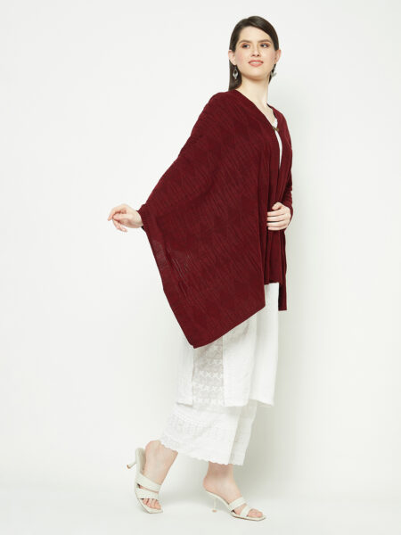 This winter season, layer up with our solid-colored self-machine knitted woolen stole and enjoy the ultra-soft texture with a premium looking floral self-knitted pattern that can be worn for both casual and formal occasions.