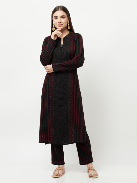 Snuggle up on a laid-back day in this super-soft kurti-set with straight pants. It’s designed in a relaxed fit with a cosy ban-neckline design and front button-brooch for warming chilly days.