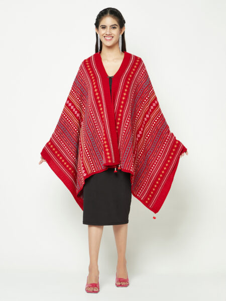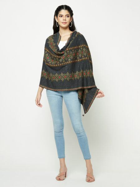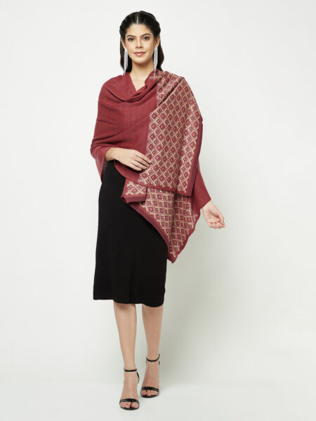 Add glamour with this geometric Design Knitted Stole, having a very modern pattern combined with soft and cozy yarn. This will definitely be a stylish stole to add grace to any outfit for comfort and versatility on any occasion.