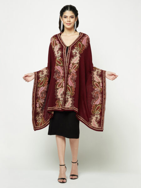 This exquisite knitted stole features a delicate floral design and a unique hook closure, making it the perfect accessory for any occasion. Crafted from soft, vibrant yarn, it adds a touch of elegance and warmth to your outfit.