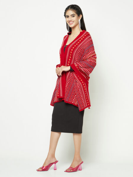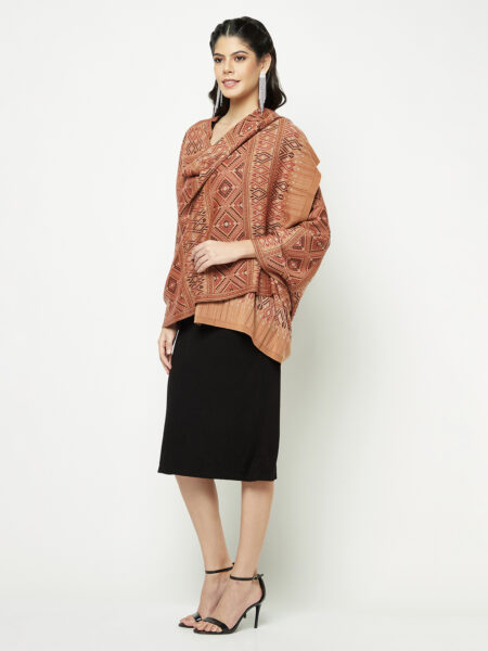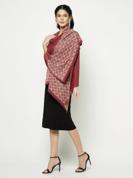 Add glamour with this geometric Design Knitted Stole, having a very modern pattern combined with soft and cozy yarn. This will definitely be a stylish stole to add grace to any outfit for comfort and versatility on any occasion.