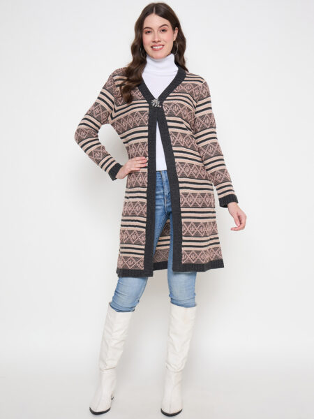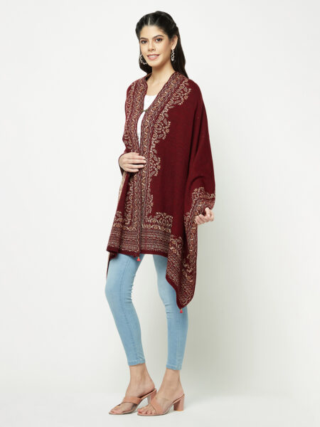 This soft knitted stole has zigzag details; it uses a contemporary design to encapsulate luxury in comfort. With a feminine flair in zigzags, this knitted stole contributes elegance to your entire outfit without compromising warmth and comfort. The knitted stole is perfect for keeping you stylish year-round.
